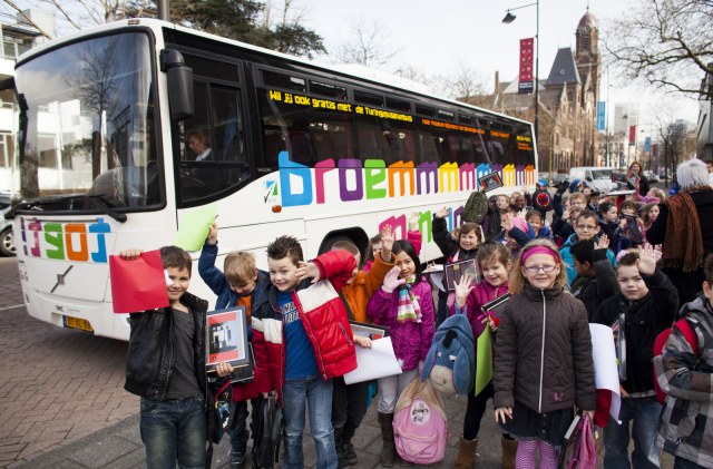 Leerlingen OBS De Brandaris uit Hellevoetsluis voor de Turingmuseumbus, foto Fred Ernst.